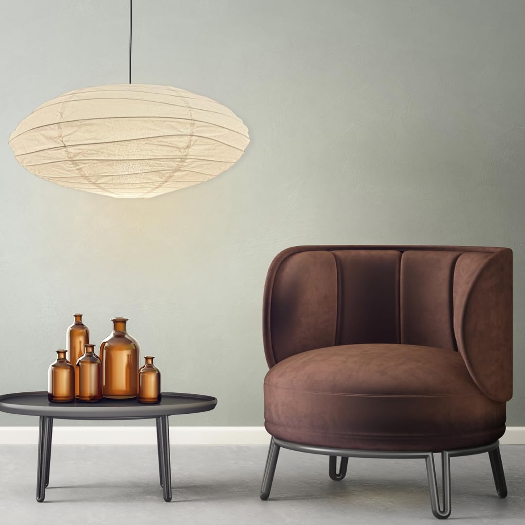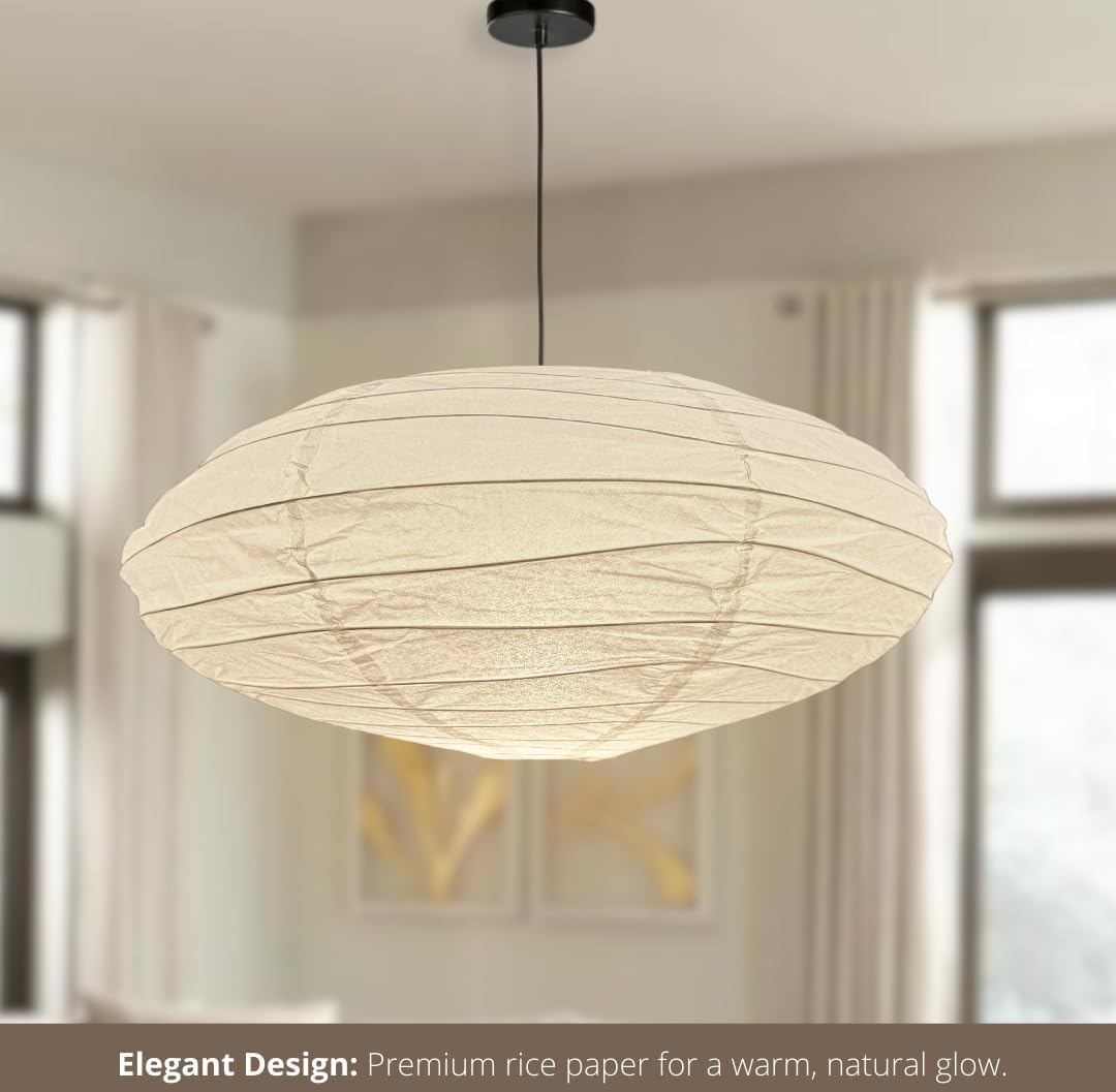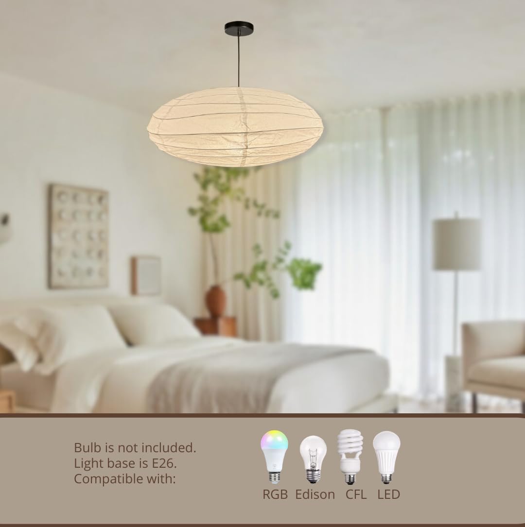 Japanese-inspired lamp with many different globe shape shape. Beautiful metal structure and shape, with paper shades which results in a soft, organic aesthetic when illuminated. The Blend of Japanese form with Modern Design creates a delicate ambient glow in your interior. Our Rice Paper Pendant Light is very easy to install and remove, suitable for professional and personal use.