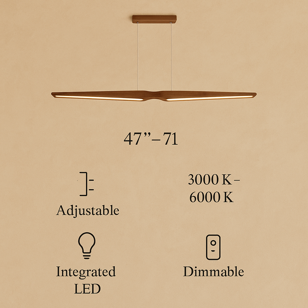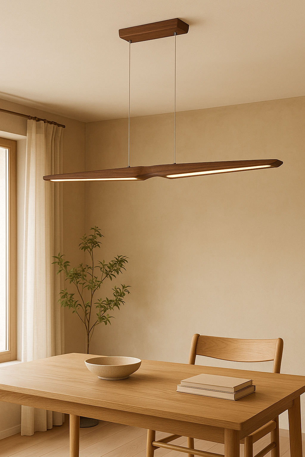 A statement of quiet sophistication, the Sculpted Wooden Linear Pendant Light brings together form and function in perfect harmony. Expertly carved from solid wood with a smooth walnut finish, its streamlined silhouette adds warmth and balance to dining rooms, kitchen islands, home offices, or creative studios.
