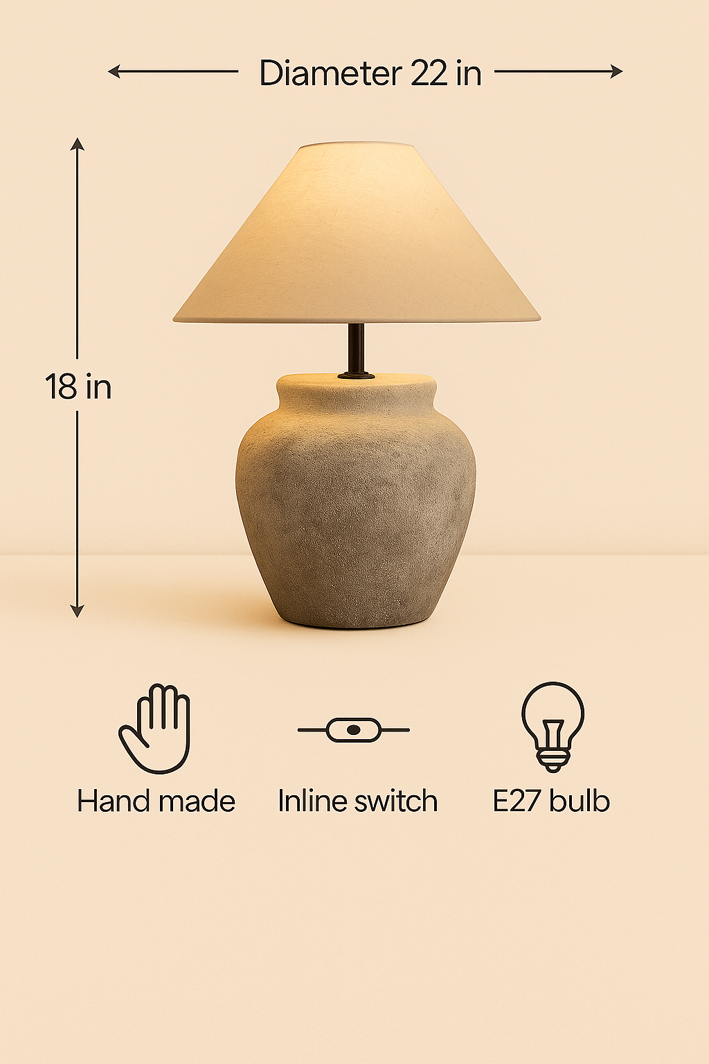 - Rustic Ceramic Base: Stone-like finish with a handcrafted look