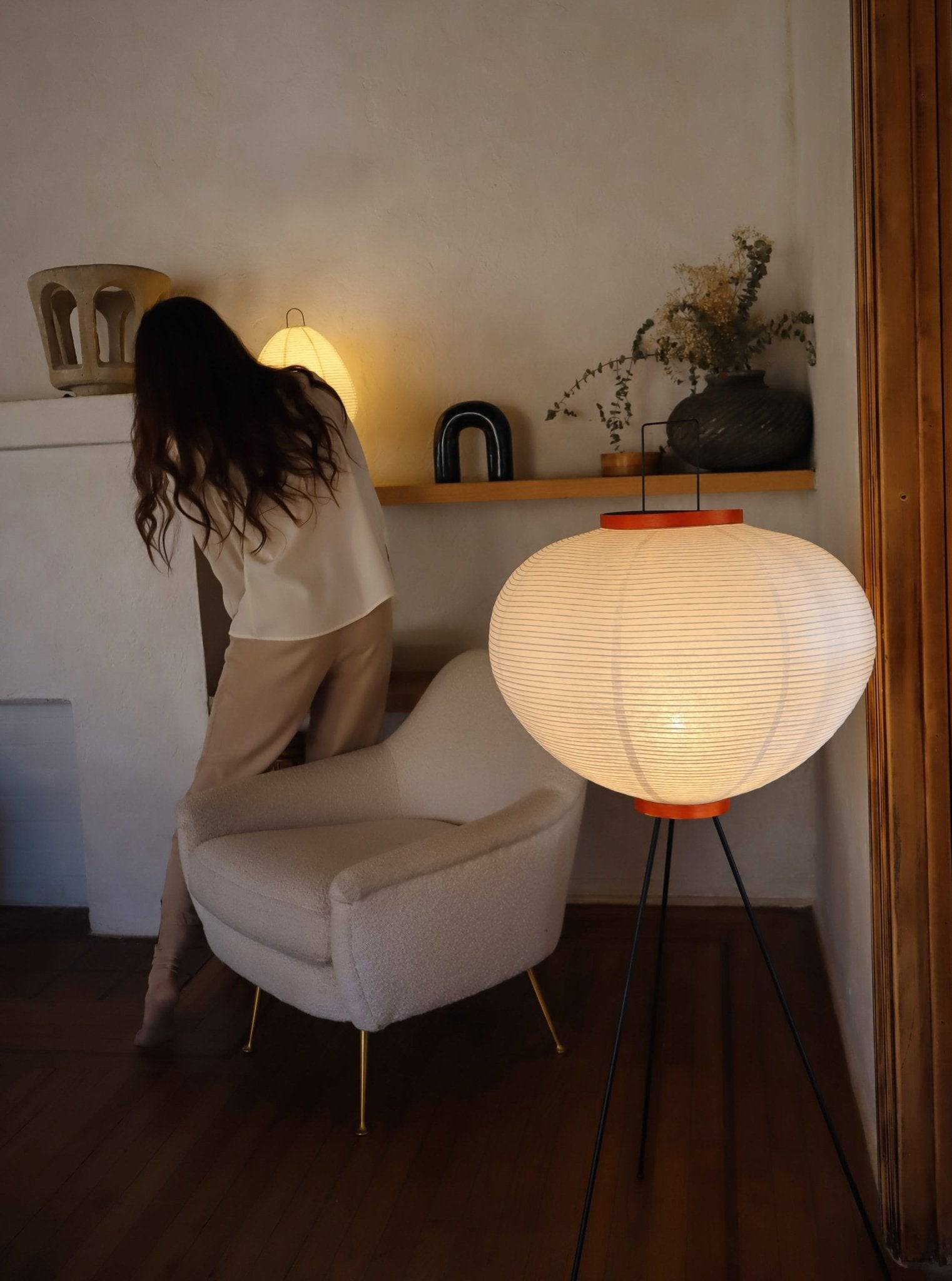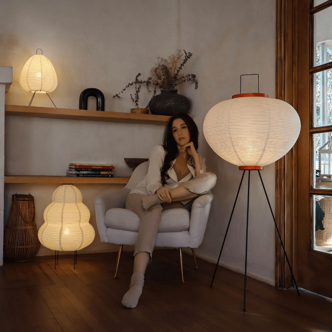 Akari Noguchi Japanese Tripod Floor Lamp • Dimmable