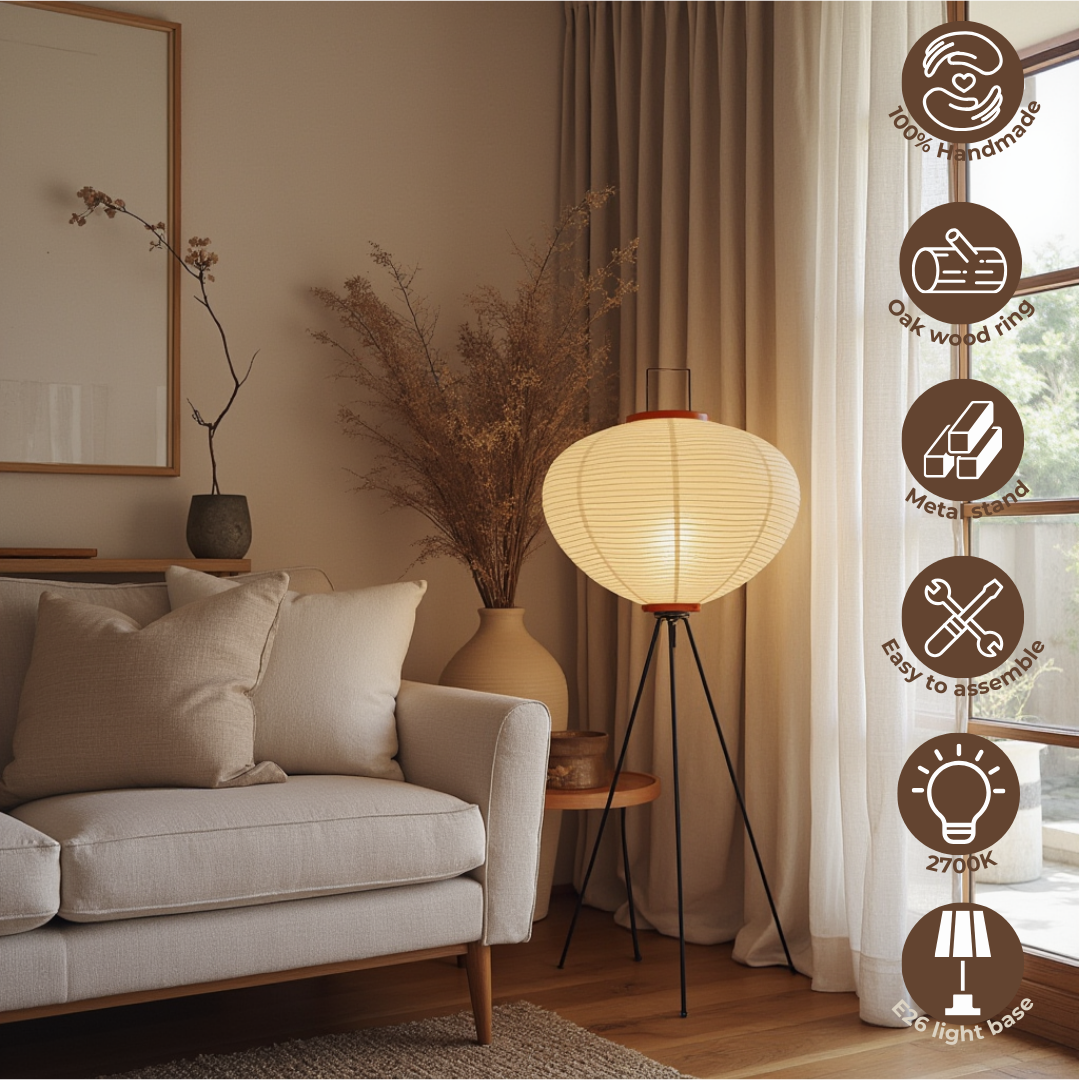 • Enhance the ambiance of your room effortlessly with our Rice Paper Floor Lantern Lamp.
