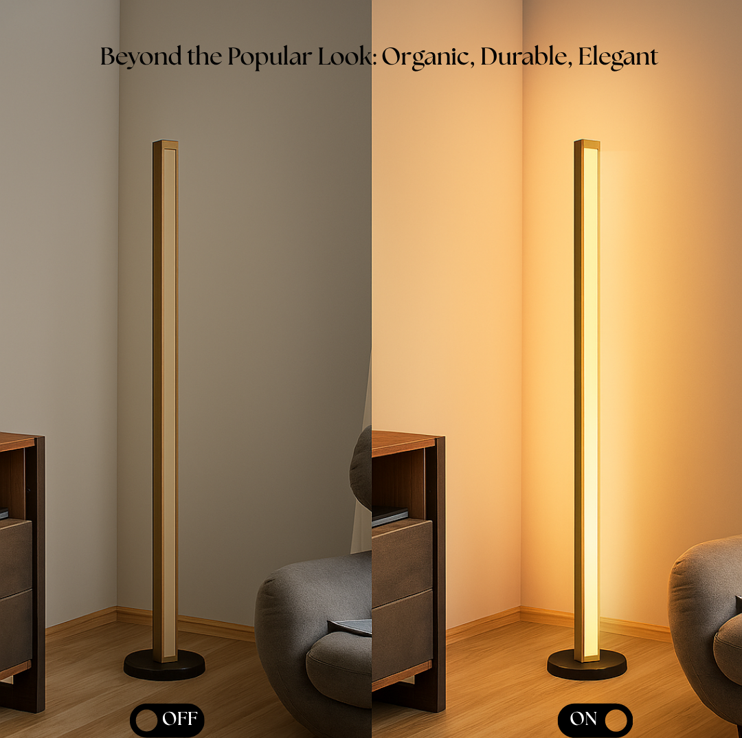 The Japandi LED Wood Floor Lamp is a sculptural lighting piece designed to bring harmony and presence into your space. With its soft vertical form and seamless wood-style finish, it balances natural warmth with modern simplicity. Whether it’s placed in a quiet reading nook or beside your favorite chair, its soft glow and minimalist silhouette offer a peaceful and intentional atmosphere.