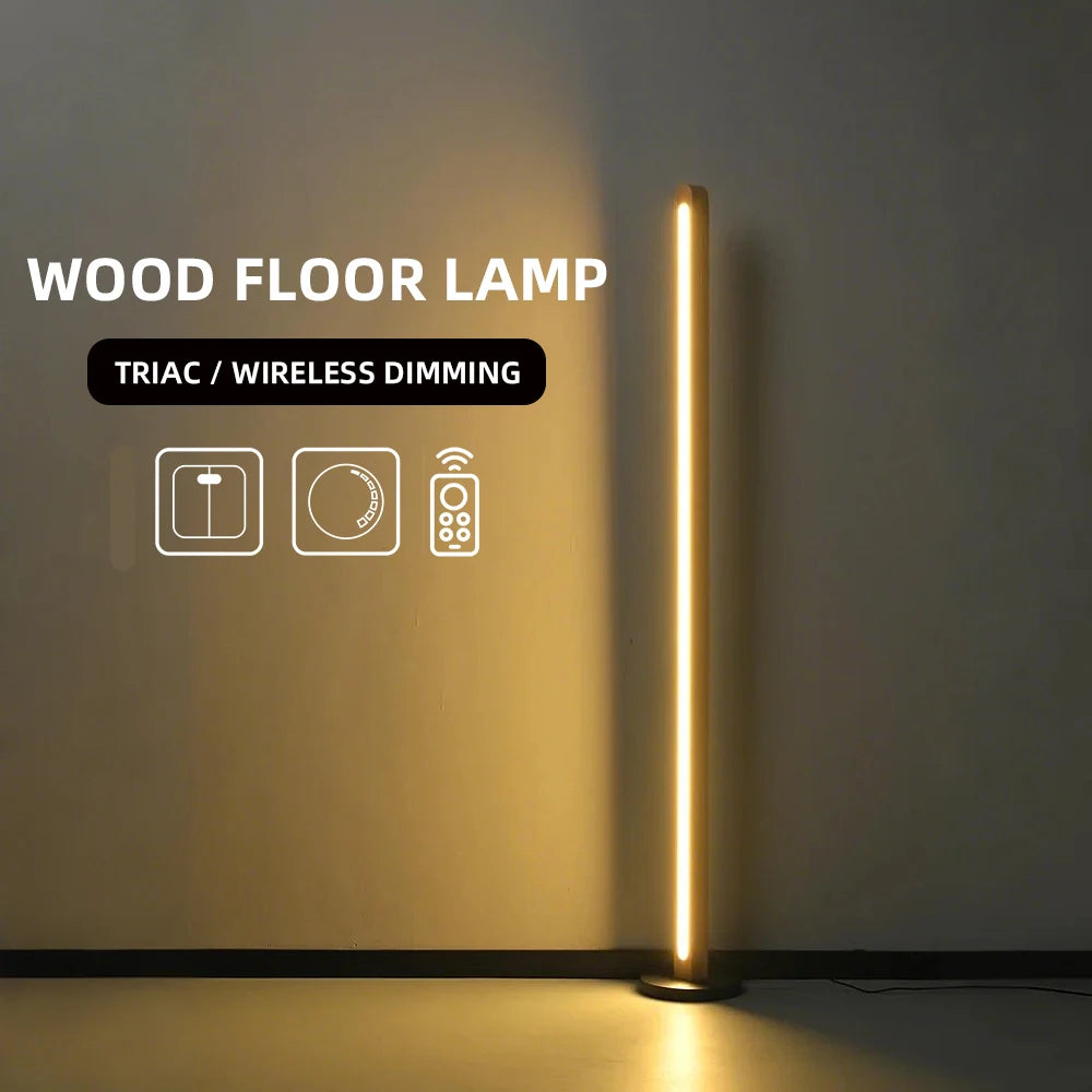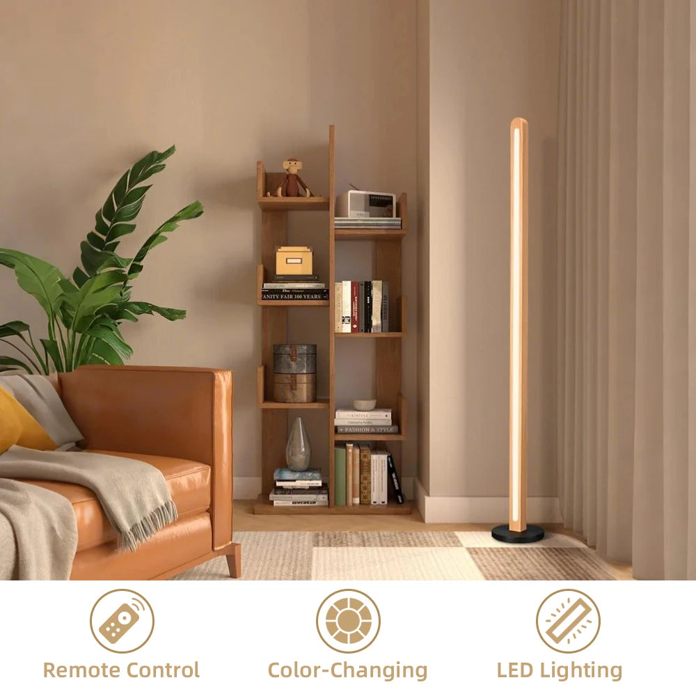Wood Linear Floor Lamp • Minimalist Corner Floor Lamp • Dimmable & Color Temperature Changing With Remote Control